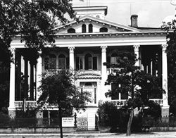 and retired from medicine about 1850 due to ill-health and to focus more time on his large planting and business interests. In August 1850, he was elected to succeed Col. James T. Miller on the Board of Directors of the Wilmington & Weldon Railroad. By 1860, Dr. Bellamy would hold the distinction of being the largest stockholder in the Wilmington & Weldon Railroad. He also served on the Board of Directors of the Cape Fear Bank. The Bellamy Children: who married William J. Duffie of Columbia; Mardsen, who became a prominent attorney and married Harriet Harleee of Mars Bluff, SC; William James Harriss, who became a noted local physician and married Mary W. Russell; and Eliza and Ellen who remained single and lived in the old home at Market and Fifth Streets; John Dillard, who became a prominent attorney and US Congressman married Emma M. Hargrove of Granville County; George, known as the “Duke of Brunswick” because of his political connections, married Kate Thees; Chesley Calhoun was never married and died in early manhood; Robert Rankin, the youngest, was a very prominent druggist and married Lilly Dale Hargrove.” Dr. Bellamy’s son William James Harriss Bellamy, later a prominent Wilmington medical doctor, was born at Wilmington in 1844. He ended his studies at Chapel Hill in the summer of 1861 to enlist as a private in Company I of the 18th North Carolina Regiment, seeing action in Virginia at Hanover Court house, Williamsburg and the Seven Days’ -- being wounded in the shoulder and knee at Gaines’ Mill. At the end of his enlistment in 1862, he returned to studies at Chapel Hill for half a session, then raised a company of cavalry in Brunswick county for home defense. He held the rank of captain assigned to coastal duty with his men, and fought in the 1865 campaign from Wilmington to Bentonville. Early Residence in Wilmington: residence originally built in 1805 while at the zenith of his political career. It was Smith’s town residence while governor – his permanent home being “Belvedere,” his plantation in Brunswick County. Dr. Bellamy lived here until their new home was built at Fifth and Market Streets.